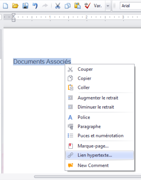 Inscrivez par exemple Documents Associés.